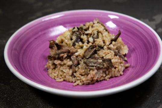 ▶️ Ingredientes (para 2 personas): 80 g. (aprox) arroz por persona, una cebolla, boletus desecados y rehidratados después durante media hora, aceite de oliva, vino blanco o rosado, 1/2 libro de agua (o caldo de pollo), queso...