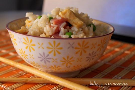 ▶️ Ingredientes: arroz largo, guisantes, tortilla francesa, jamón york, salsa de soja y aceite de girasol.▶️ Encuentra aquí la receta completa.