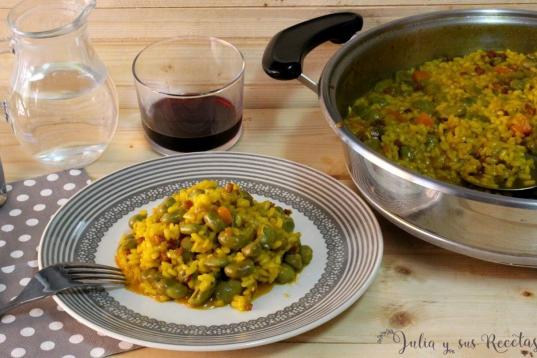 ▶️ Ingredientes: arroz, jamón serrano, habas, zanahoria, cebolla, tomate rallado, ajo, pimiento verde, caldo de carne, agua y sal.▶️ Encuentra aquí la receta completa.