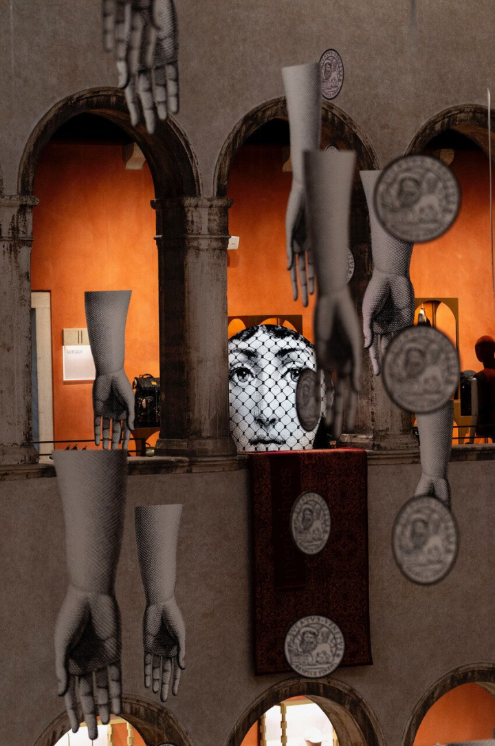 La obra de Fornasetti, colgada en la Fondaco dei Tedeschi expresa lo que es él: arte puro.