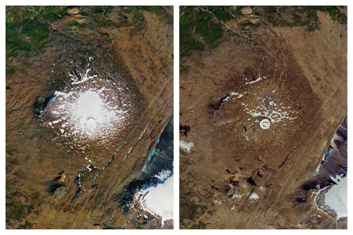 Desde 1979 —cuando surgieron las fotografías por satélite— la capa de hielo del océano Ártico, evaluada cada mes de septiembre, se ha reducido a un ritmo del 13% cada década, advierte el Panel Intergubernamental del Cambio Climático de Naciones Unidas (IPCC). A finales de este verano, el Ártico alcanzó su segundo mínimo histórico en volumen de hielo desde que existen registros, señala la Administración Nacional Oceánica y Atmosférica (NOAA).
