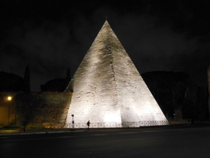 La pirámide Cestia representa un viaje a Egipto en plena Roma. También conocida como de Cayo Cestio, se cree que fue construida entre el siglo 18 y el 12 a.C. Su finalidad originaria era la de servir como tumba para el magistrado Cayo Cestio.