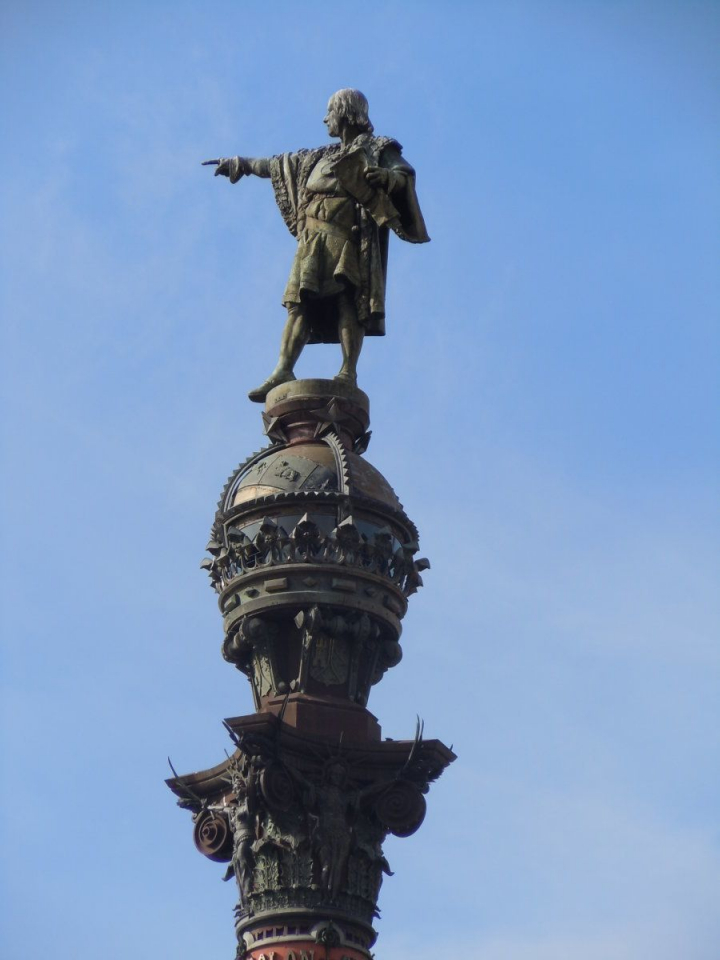 ¿Hacia dónde apunta la estatua de Colón?