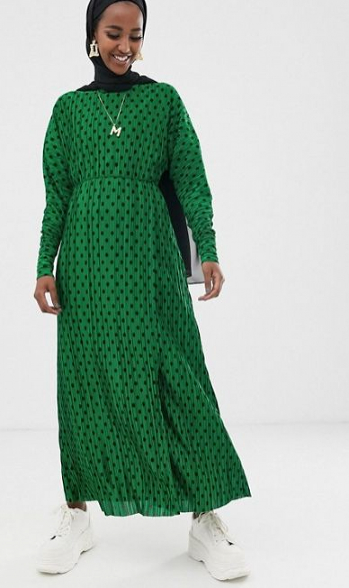 La manga larga y el verde convierten este vestido en un candidato a imprescindible para los próximos meses. Puedes llevarlo con deportivas como en la imagen, pero también optar por unas botas de tacón ancho o unos stilettos para algún evento. En Asos, por 51,99 euros.