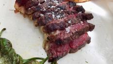 Y otro clásico de las carnes decimonónicas, el solomillo Wellington (de vaca madurada de Aberdeen), también con un sorprendente punto por cada una de sus partes: el exterior bien tostado se va haciendo más crudo hasta un centro rosado pero cocinado. Es la parte más importante de esta receta junto con la calidad del hojaldre que la envuelve. Me importan los champiñones, el foie y todo lo demás, pero si fallan el punto del solomillo o el hojaldre, nada que hacer. Este estaba dorado, crujiente y delicado. Perfecto. Se podía comer todo sin salsa de pimienta, pero también esta era excelente.