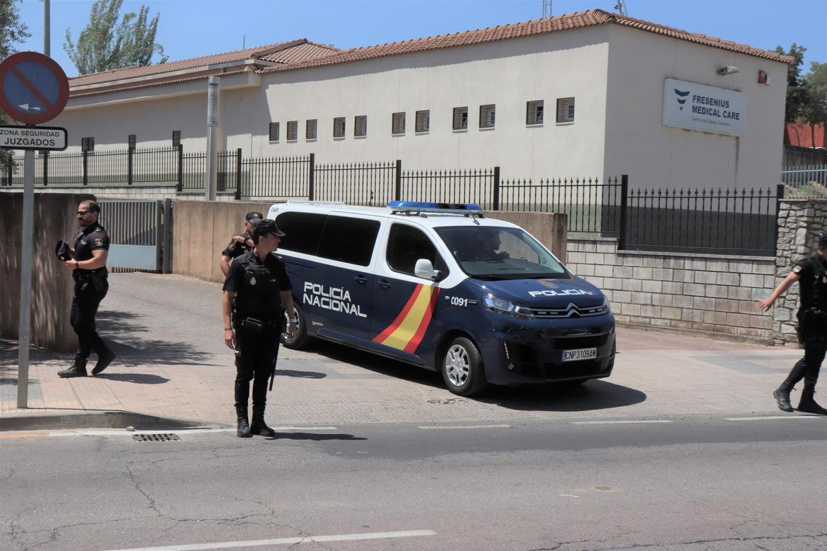 Minutos después de comunicar a los arrestados la medida de ingreso en prisión, ambos han sido introducidos en un furgón policial estacionado en el interior del Palacio de Justicia para su trasladado al centro penitenciario de Cáceres.