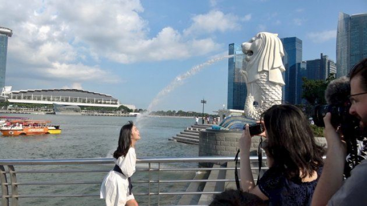 Merlion es una escultura con cuerpo de pez y cabeza de león que expulsa de su boca un potente chorro de agua a la Bahía de la Marina. También es todo un símbolo de la ciudad nueva. Da igual a la hora que vayas, siempre verás hordas de turistas haciéndose todos la misma ridícula foto: boca abierta simulando que engullen el chorro de agua.