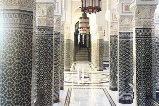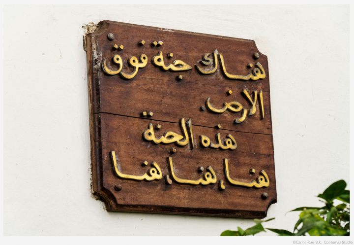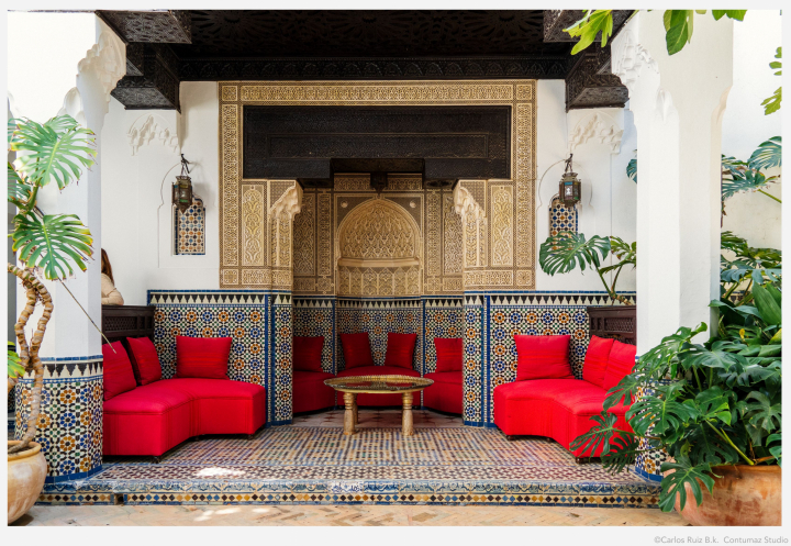 “El paraíso existe y está aquí, aquí y aquí”, se puede leer en una inscripción en el espectacular patio de Sidi Hosni. Se trata de uno de los lugares más insólitos del Tánger de esa época del esplendor, la residencia de Bárbara Hutton a la que Sira acude en la novela a investigar y acaba comprometiéndose a hacer unas cortinas con unas telas para la socialité.