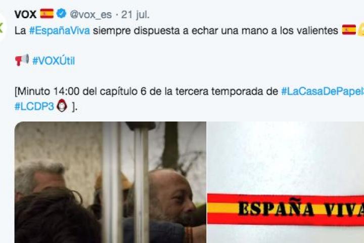 Vox ha querido subirse a la ola y destacar un momento concreto de la popular serie de Netflix La Casa de Papel, pero la jugada se les ha vuelto totalmente en su contra.