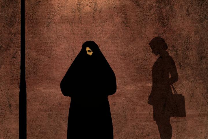 En silencio, sin vuelo, deslucida, holgada, como una sombra, cae sobre el enjuto cuerpo de Soledad la chilaba.