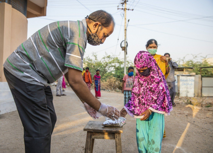 Nuestra organización en la India está actuando en primera línea para prevenir y luchar contra el virus y trabaja con las administraciones públicas para desarrollar, de manera conjunta, las medidas necesarias para su contención. Hemos puesto a disposición de esta emergencia global nuestros recursos humanos y materiales para prevenir del virus y atender a las personas. Desde el cierre de las escuelas en la India el pasado 19 de marzo en los estados de Andhra Pradesh y Telangana, en los que la Fundación actúa, la prioridad ha sido asistir a la infancia con necesidades especiales y en situación de orfandad.