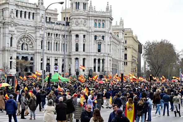 Pinchazo de la ultraderecha en Madrid, donde apenas unas 2.500 personas han acudido a la convocatoria para pedir la dimisión del Gobierno convocada por Vox frente al Palacio de Cibeles, según fuentes de la Delegación del Gobierno.