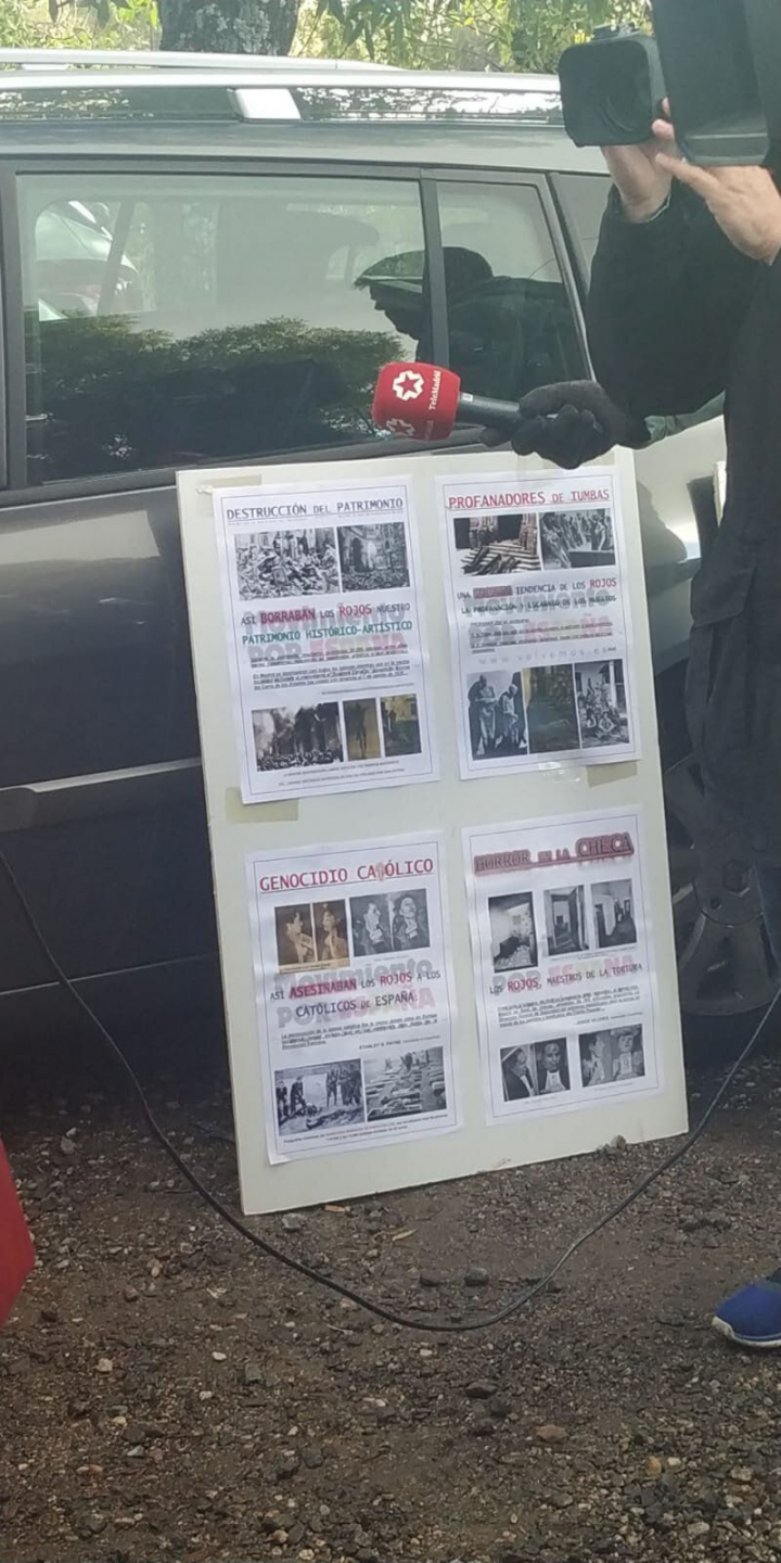 Eso sí, se ha llevado un buen despliegue de accesorios para dejar clara su oposición a que se exhume al caudillo, BSO incluida: