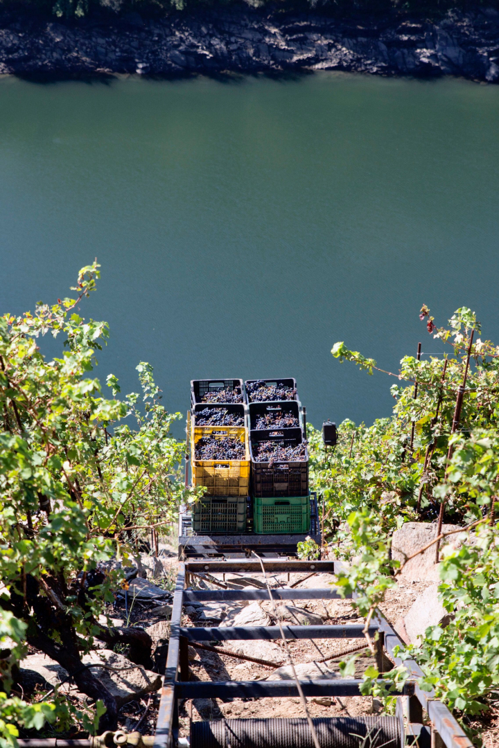Las vides se encuentran muy cerca unas de otras, sin que exista apenas espacio que permita a los trabajadores moverse entre ellas. Nada tiene que ver con los viñedos de las llanuras de la Ribera del Duero o de La Mancha. El terreno de Sindo cuenta con unos raíles que ejercen de ascensor para elevar las cajas de uvas por la ladera de la montaña desde el río hasta el camino, algo bastante inusual en la zona, ya que suelen ser terrenos muy pequeños y de difícil acceso. En algunos casos, solo se puede llegar en barco a través del río.