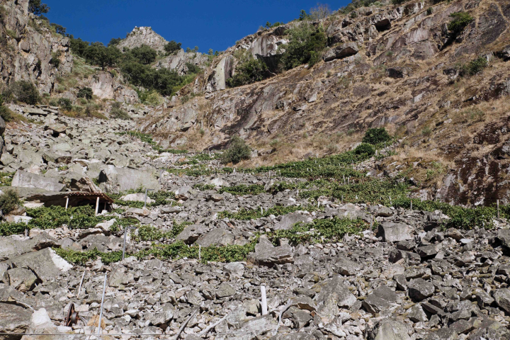 Muchos de los viñedos de la zona se encuentran en la ladera del río Sil, que recorre un cañón de 500 metros de profundidad, o junto al Miño. Estos se sitúan en terrazas diminutas de la propia montaña, unas encima de otras, siempre mirando al sur. La piedra de las terrazas ayuda a preservar el calor durante las frías noches. Muchas llevan construidas así desde la época de los romanos y son conocidas como bancales, pero el tiempo no ha pasado en balde. “Antes no se hacía vino para vender, solo para consumir en la familia”, cuenta Sindo.