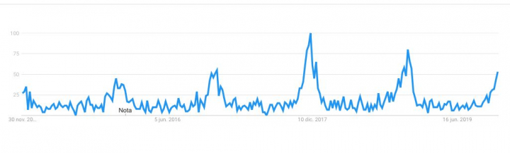 Evolución del interés de los juguetes de madera en los últimos cinco años.GOOGLE TRENDS
