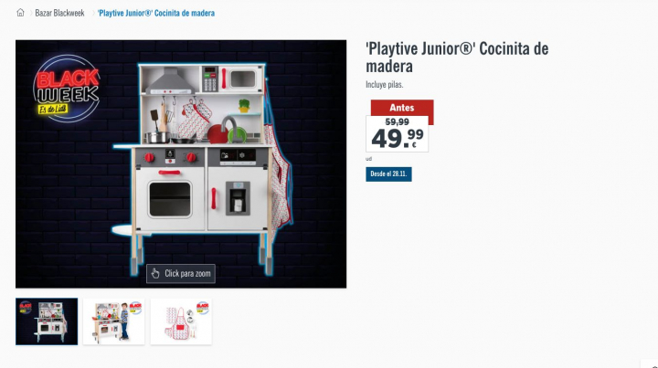 La buena noticia para los Reyes Magos y Papá Noel es que estos juguetes no solo se venden en Lidl. En España se pueden conseguir a través de Amazon, que tiene en catálogo algunos de los productos de Playtive. Claro que con el gigante estadounidense pasa lo mismo que con el alemán: los productos vuelan y, de hecho, la cocina ya está agotada.