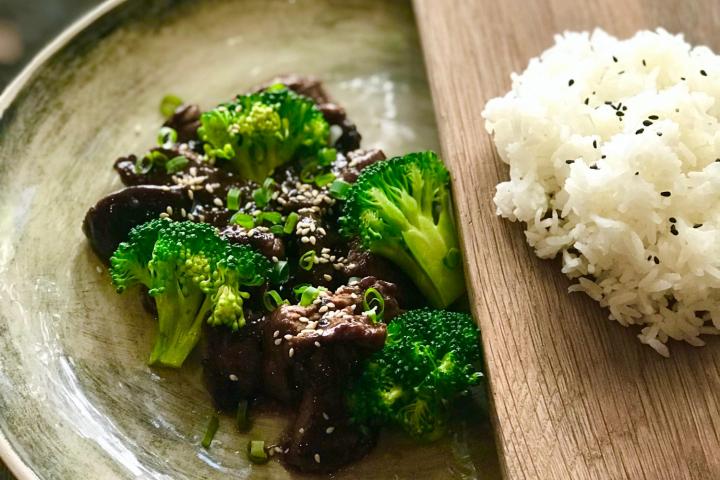 Calentar el wok, añadir el aceite y saltear la carne durante 2 minutos con la llama bien fuerte. Agregar los vegetales y revolver 2 minutos más, verter la mezcla de la salsa de ostras, espolvorear con el sésamo y servir bien caliente acompañado de arroz jazmín.