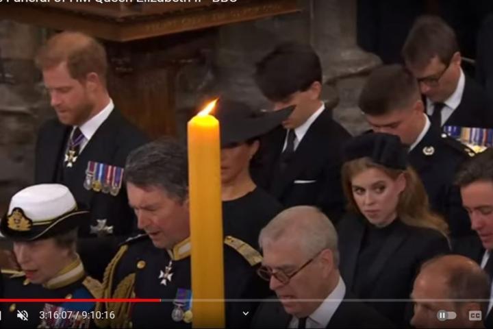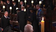 El féretro de Isabel II entró en el templo seguido de nuevo por los principales miembros de la familia real, entre ellos el rey Carlos III y su esposa, la reina consorte Camila. El deán de Windsor presidió una ceremonia puramente religiosa en la que también participó el arzobispo de Canterbury, Justin Welby.
