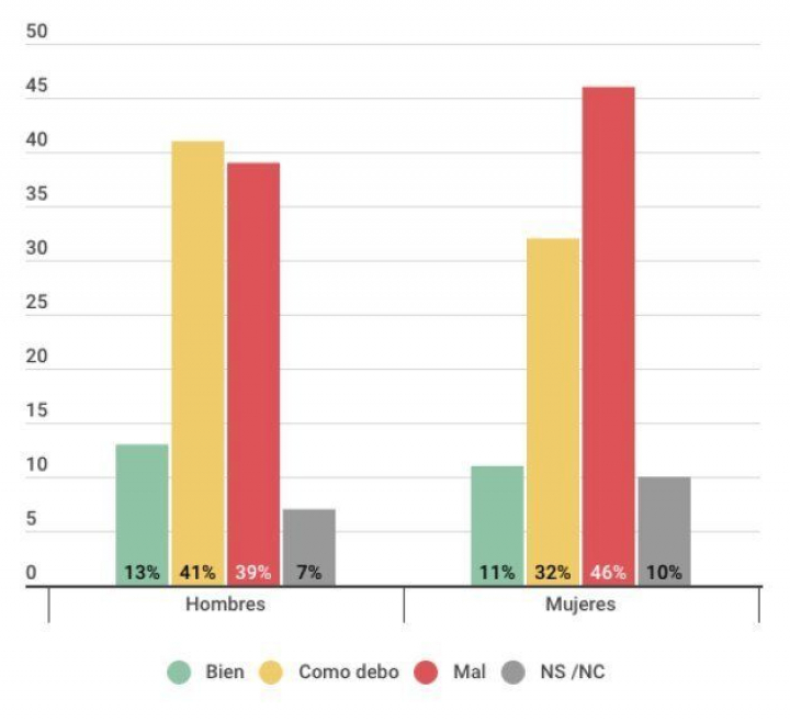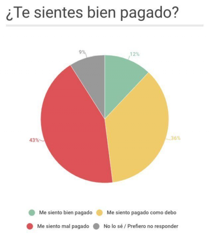 También se observa una gran diferencia entre el porcentaje de hombres que se consideran pagados como deben (41%) y el de las mujeres (32%).
