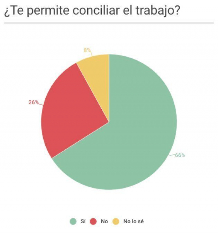 Otro aspecto importante del ámbito laboral es la conciliación familiar. Un 66% de los encuestados dice que sí puede, pero un 26% admite que no.