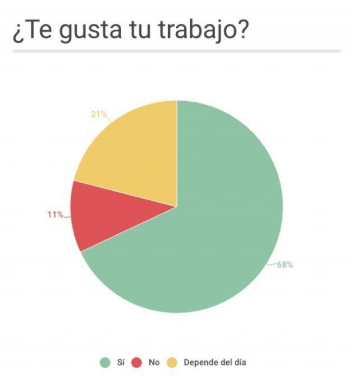En todo caso, la mayoría de los españoles, un 68%, asegura que le gusta su trabajo, frente el 11% al que no y el 21% que reconoce que depende del día.