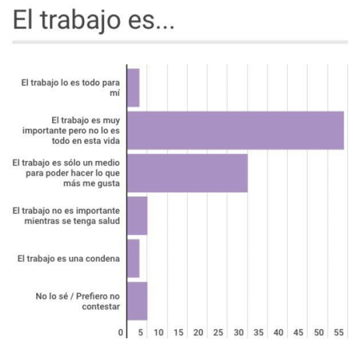 Sólo un 3% cree que lo es todo para él y un porcentaje idéntico cree que el trabajo "es una condena". El 5% considera que no es importante "mientras se tenga salud".