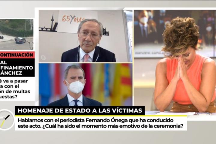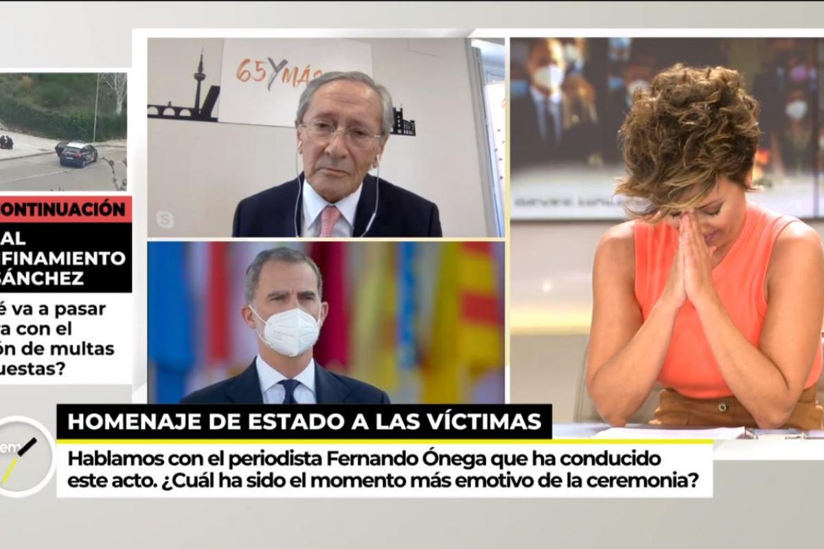 La presentadora no ha podido contener la emoción y no ha podido continuar con la entrevista. Sus colaboradores han sido los que han agradecido a Ónega sus palabras en el homenaje.