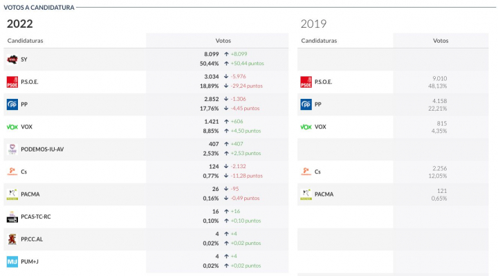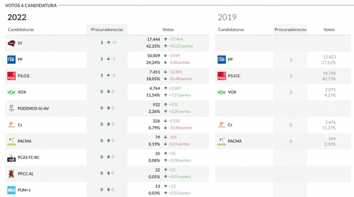 De nuevo, el PSOE ha sido el partido más afectado por el crecimiento de este partido de la España Vaciada, al pasar del 48,1% obtenido en 2019 al 19% de este domingo. Una sangría de más de 6.000 votos de un total de 9.000 logrados hace tres años.