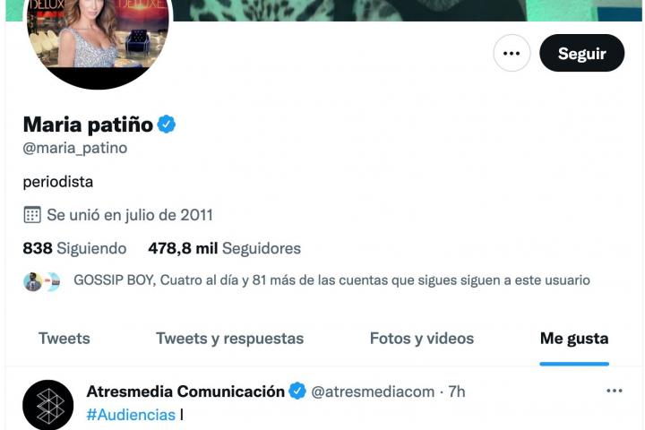 La presentadora María Patiño, uno de los rostros más mediáticos y conocidos de Mediaset, ha dado que hablar en Twitter por el ‘me gusta’ que le ha dado a la cuenta oficial de la Comunicación de Atresmedia.