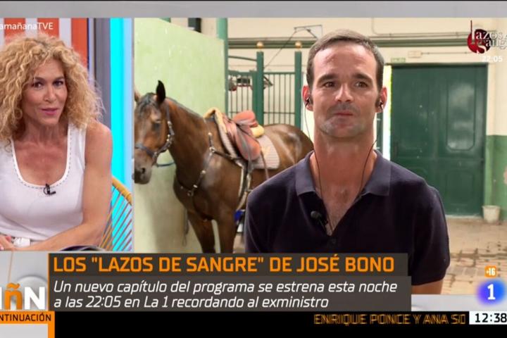 Para promocionar lo que se iba a tratar en el programa y conocer un poco mejor al político antes de la cita, en La Mañana de TVE conectaron con su hijo, José Bono Jr, que hizo la entrevista desde la caballeriza en la que se encontraba.
