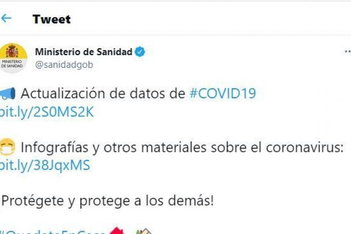 Aunque la etiqueta ha causado amplia sorpresa ahora, lo cierto es que no se trata de un error, dado que el Ministerio la está utilizando todos los días en el tuit en el que informa de los datos del coronavirus.