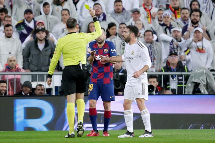 Primero fue Vinicius, por una clara falta sobre Semedo. Y después Carvajal y Jordi Alba, por medio pelearse entre ellos tras un choque.