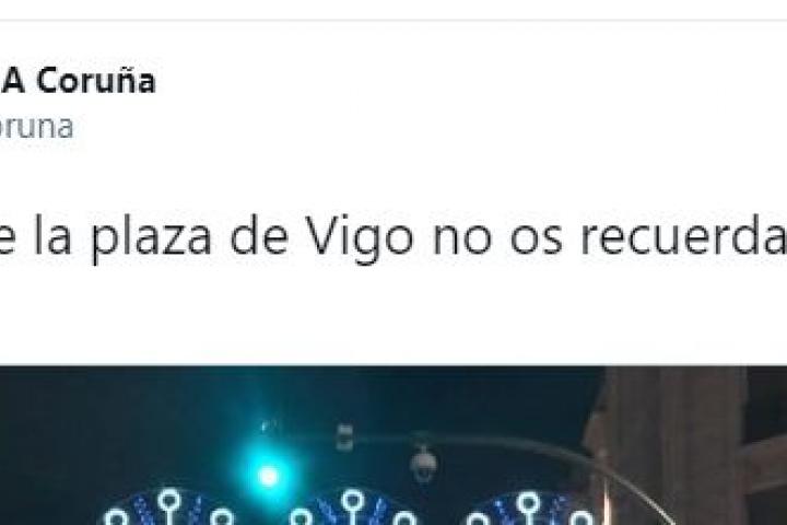 La cuenta de Twitter del programa radiofónico Voces de A Coruña , de RadioVoz, compartió estas luces que tienen un gran parecido al coronavirus: ”¿Las luces de la plaza de Vigo no os recuerdan a algo?”.