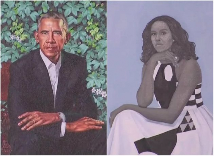 Los retratos oficiales de Barack y Michelle Obama han sido desvelados en su presencia este lunes en la Galería Nacional de Retratos de Washington. El ex presidente demócrata ha escogido a un artista, Kehinde Wiley, cuyo estilo se relaciona con motivos vinculados al hip-hop, que ha elaborado un retrato en el que Barack Obama aparece sentado en una silla con un colorido fondo de hojas y flores. La ex primera dama, por su parte, ha elegido a la artista Amy Sherald, que ha optado por un retrato en el que predominan los tonos grises.