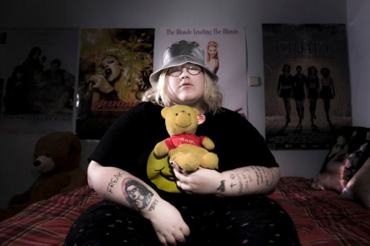 Esty abre la puerta de su casa con pantalón de pijama y recibe a El HuffPost un día antes de estrenar Looser, producida por los Javis (Javier Calvo y Javier Ambrossi), que han sido "hadas madrinas" para ella. De una sola mirada a su cuarto, uno puede corroborar que lo suyo no es un papel. En él se pueden encontrar sus ya conocidos sombreros, pósters de películas de los 90 y una cama coronada con un cojín de Edward Cullen y otros dos de Irina Cosmopolitan y su novia (es sabido que Soy Una Pringada odia a esta youtuber). "La odio tanto que me hice yo misma estos cojines", dice con sarcasmo. Eso sí, cuando se le pide si puede sonreír en alguna de las fotos su respuesta es la ya esperada: "No".