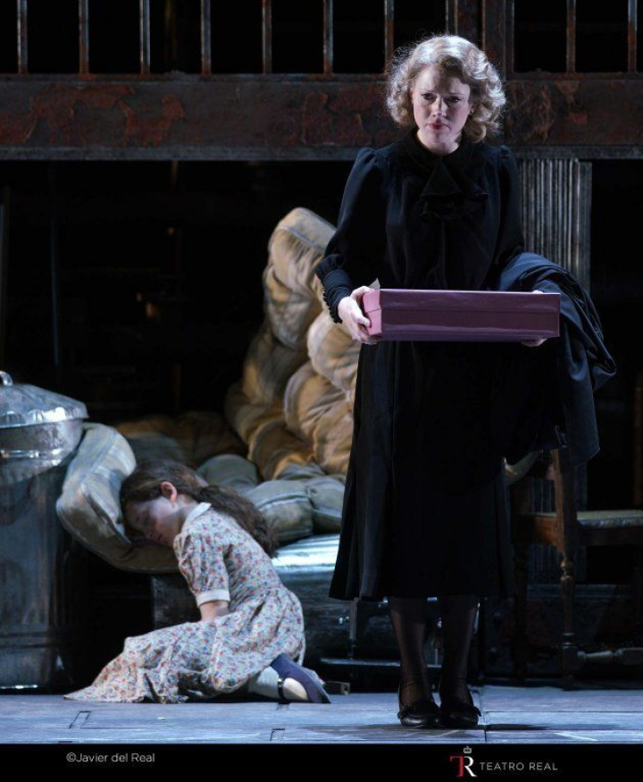 En este plano general, que es un retrato de la vida, llena de contradicciones, la obra nos acerca en un efecto zoom a una historia particular, la del matrimonio Maurrant, con su drama íntimo de soledad, de incomunicación, de celos, de maltrato y de violencia de género. Pero lo corrosivo es que esta historia está explicada, más allá de lo emocional, como una consecuencia casi quirúrgica, inevitable, de las contradicciones del entorno, pese a comportar un doble asesinato: la esposa y su amante, acribillados por el marido despechado. Más corrosivo aún es que el personaje del amante de la esposa, que en una trama así debería ser uno de los protagonistas, sea absolutamente marginal, secundario, un comprimario que aparece un momento y solo habla, ni siquiera canta. Como si se tratara de un elemento irrelevante en la rueda implacable de los acontecimientos.