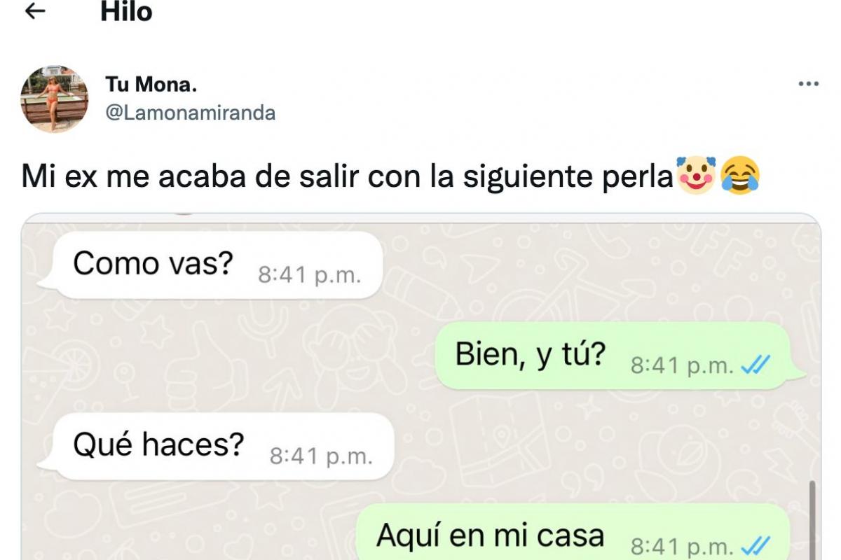La usuaria @Lamonamiranda ha logrado una importante repercusión al compartir la conversación que ha mantenido con su expareja por la aplicación de mensajería WhatsApp.