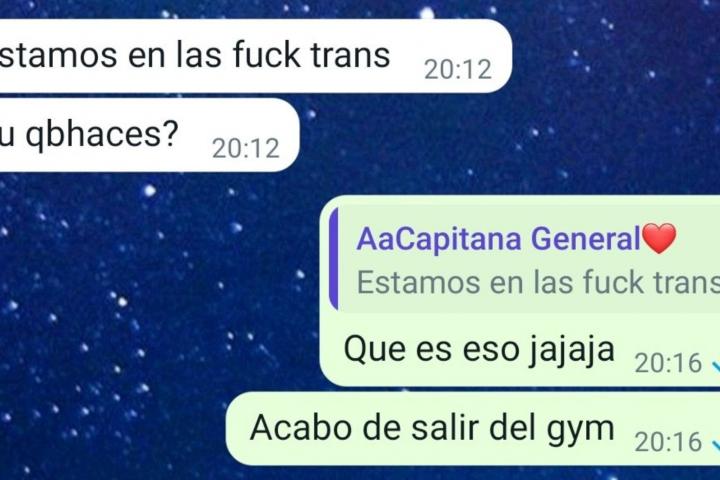 “Estamos en las fuck trans, ¿tú qué haces?”, le ha dicho la madre primero a eso de las ocho de la tarde. “Qué es eso”, ha preguntado por sorpresa la persona que ha subido la conversación, que añade que acaba de salir del gimnasio.