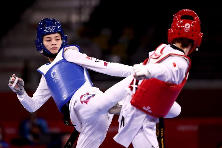 La taekwondista Su Po-Ya, ante su rival Yamada en los Juegos de Tokio 2020.
