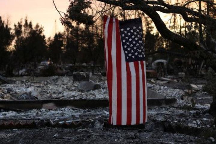 Una bandera americana cuelga de la rama de un árbol calcinado en Santa Rosa, California, ayer jueves.Jim Urquhart / REUTERS