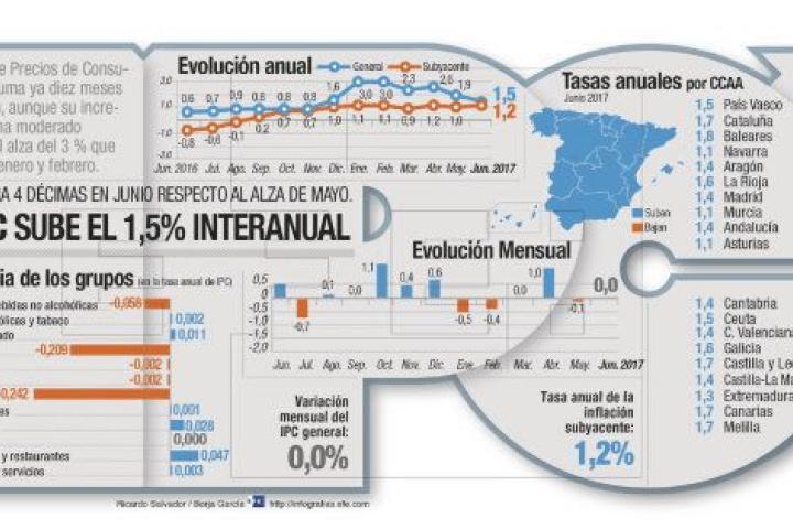 El IPC crece un 1,5% en junio, una inflación a la baja por el descenso de los carburantes pero que todavía resta poder adquisitivo a los sueldos medios