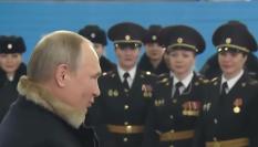 MOSCOW, RUSSIA - NOVEMBER 4: (RUSSIA OUT) Russian President Vladimir Putin carries a bouquet of red roses during the ceremony at Red Square on November 4, 2022, in Moscow, Russia. President Putin laid flowers to the Monument of Minin and Pozhars...