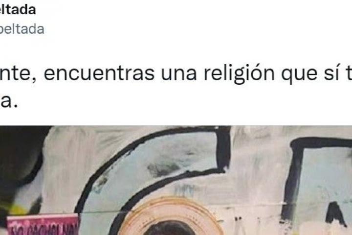 Además, en el grafiti sostiene un perro y está acompañado de otros dos. “Y de repente, encuentras una religión que sí te representa”, ha añadido la usuaria junto a la imagen.