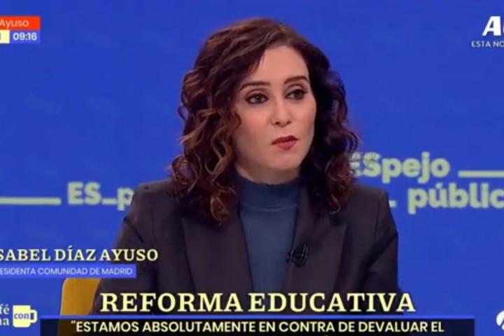 La presidenta de la Comunidad de Madrid, Isabel Díaz Ayuso, ha sido entrevistada este miércoles en Espejo Público. La representante ‘popular’, entre otras cuestiones, ha tenido que hablar de las declaraciones que hizo Cayetana Álvarez de Toledo en el diario El Mundo.