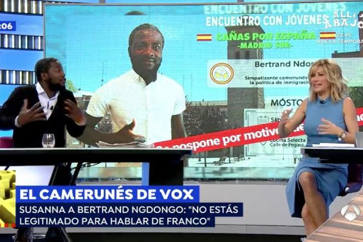 Susanna Griso ha hablado este martes en Espejo Público (Antena 3) de su encontronazo con Bertrand Ndongo, el hombre de Camerún al que muchos llaman “el negro de Vox”.