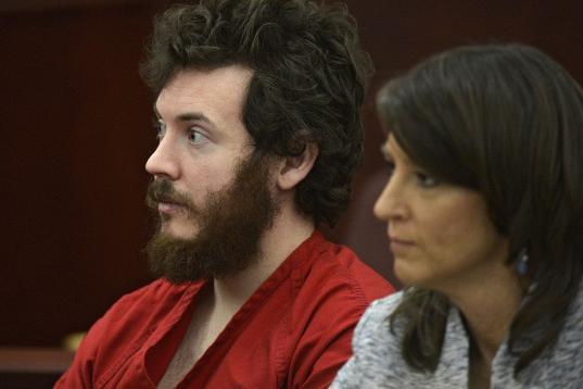James Holmes, a la izquierda, acompañado de su abogada defensora Tamara Brady durante la audiencia en la que acusaron formalmente al primero en un tribunal federal en Centennial, Colorado, el 12 de marzo de 2013. La defensa pretende que se le c...