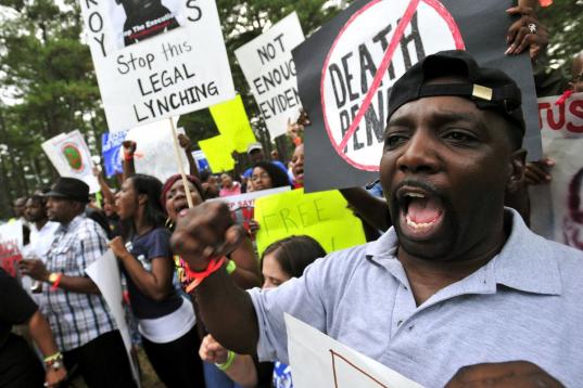Manifestantes protestan en una foto de archivo del 21 de septiembre del 2011, contra la pena de muerte en una marcha por el caso de Troy Davis en Jackson, Georgia. Davis fue ejecutado el año pasado por el homicidio de un policía en 1991. Estad...