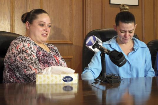 Amber McGuire, izquierda, habla de la ejecución de su padre, el asesino convicto Dennis McGuire, mientras su cuñada Missie McGuire llora en una conferencia de prensa el viernes, 17 de enero del 2014, en Dayton, Ohio. La hija del recluso dijo q...