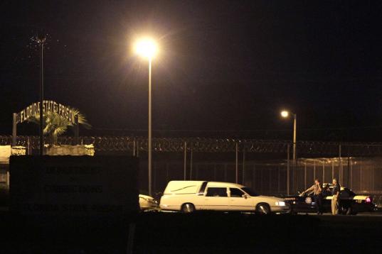 Una carroza se lleva el cadáver de Manuel Valle de la Prisión Estatal de la Florida después de su ejecución el miércoles 28 de septiembre del 2011 en Starke, Florida. Valle, de 61 años, había sido convicto del asesinato de un policía, Lo...